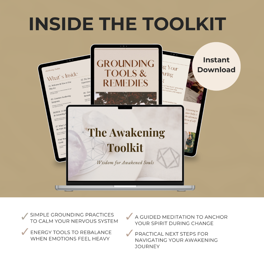 Awakening isn’t always bliss. One moment you feel expansive, the next you’re overwhelmed and unsure where to turn. The Awakening Toolkit is here to support you with practical, soulful tools to steady your body, mind, and spirit.