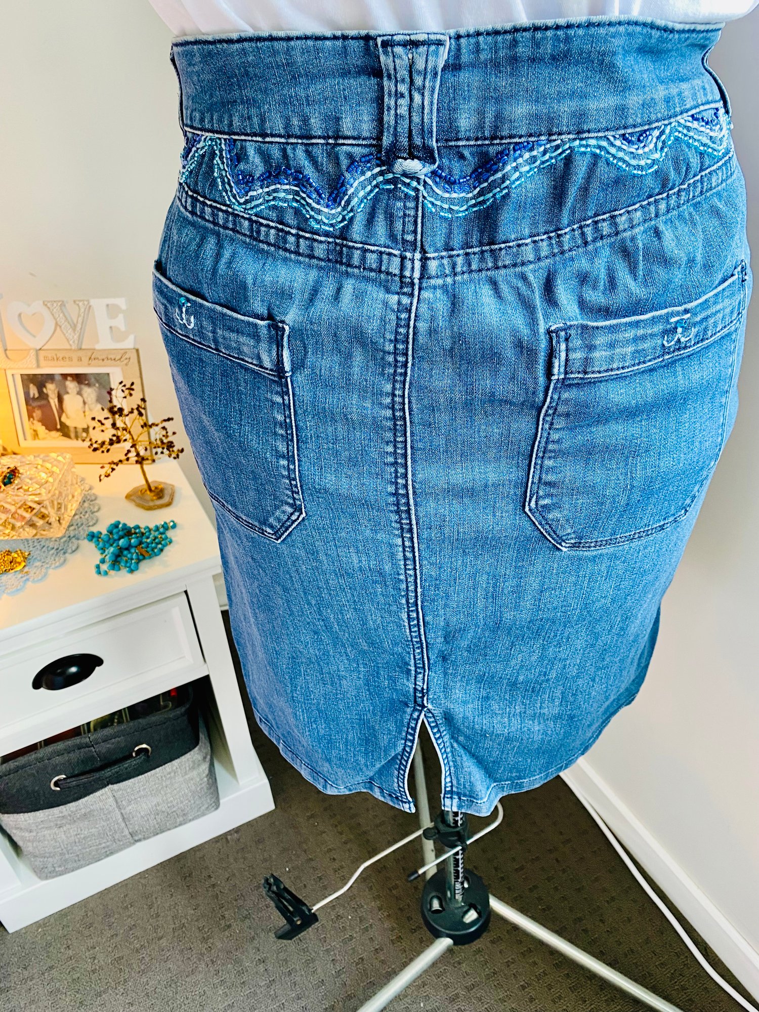 We strive to offer a truly unique, individually crafted garment. Each piece is handmade rather than mass-produced, and as such may feature natural variations that celebrate its individuality. The beads used are carefully sourced from disused jewellery, and the thread comes from long-loved craft stashes generously collected from fellow makers. By repurposing these materials, we do our part to support the environment through thoughtful recycling. Our Skirts are made from 100% cotton. When you shop with us, you can do so with confidence, knowing you are investing in a garment created with care, integrity, and sustainability—one to wear, treasure for years, and hopefully pass on for someone else to enjoy.