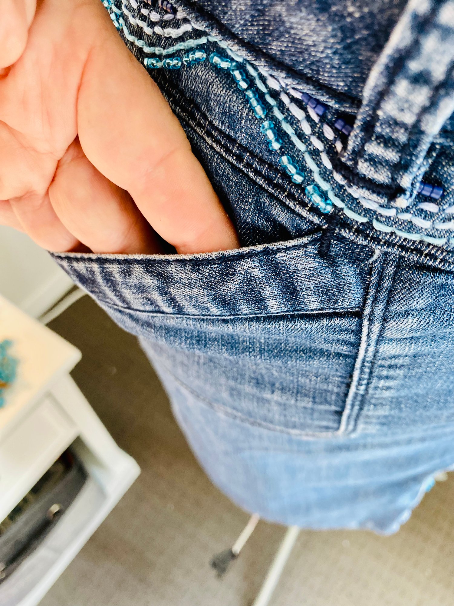 We create truly one-of-a-kind garments, lovingly hand embellished rather than mass-produced. Each piece carries its own unique character, with subtle variations that celebrate individuality. Our beads are thoughtfully sourced from disused jewellery, and our threads come from long-cherished craft stashes shared by fellow makers—giving beautiful materials a new life while reducing waste.