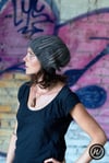 Shown in The Yarn Collective Bloomsbury DK in shades Soot & Sand [263yd/240m per 100g; 100% Merino]Shown in size 20in/50.75cm on model with 19.5in/49.5cm circumference head
