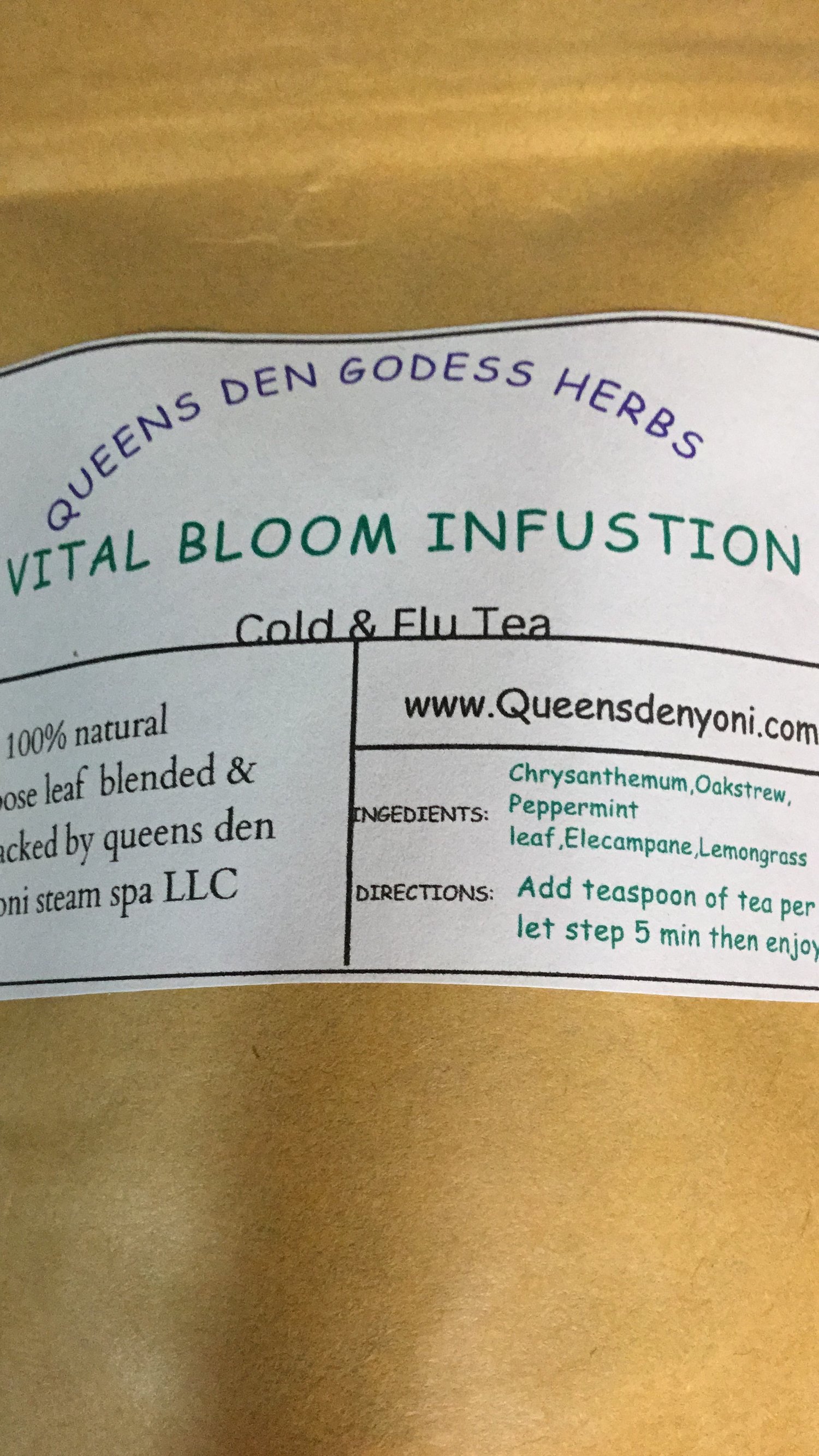 This custom blended organic loose Tea is good for colds and flu symptoms . That are usually related to body pain, respiratory or congestion, cough and so many other symptoms. This customize blended tea Is going to help soothe nourish and heal your cold and flu symptoms. Drink 2-3 Cups a day of hot tea and let Mother Nature organic herbs do the rest