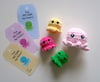 These baby octopi are suitable as kawaii (“cute”) ornaments or keychain charms. They serve as fun kids toys, nursery decor, and pocket-sized friends! They’re perfect as birthday party favors or Valentine’s Day gift sets for an entire class of students. They sell well in craft fairs and markets. In addition, they can be used for therapy as a sensory fidget toy or stress ball, for people with anxiety, ADHD, or autism.