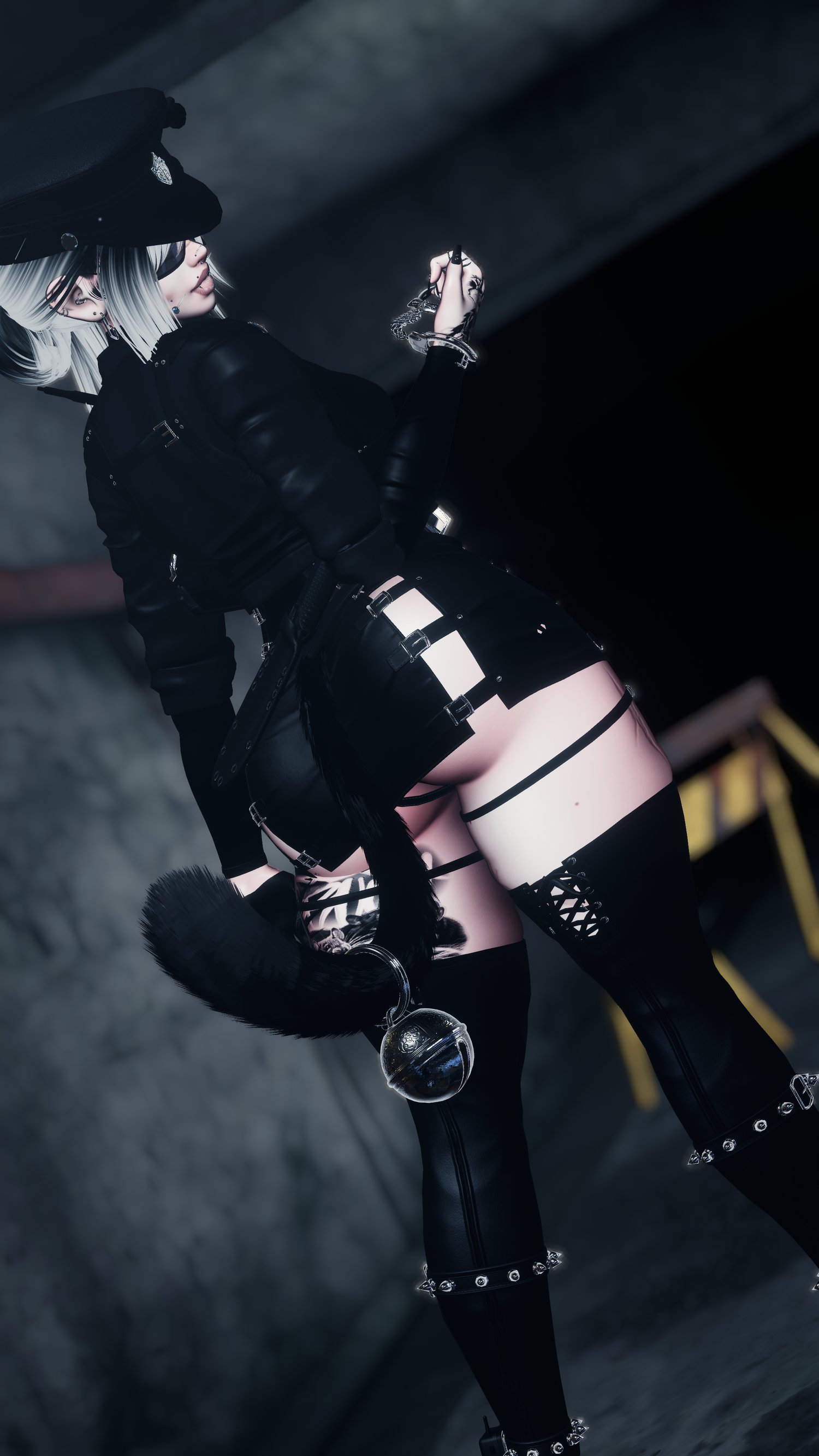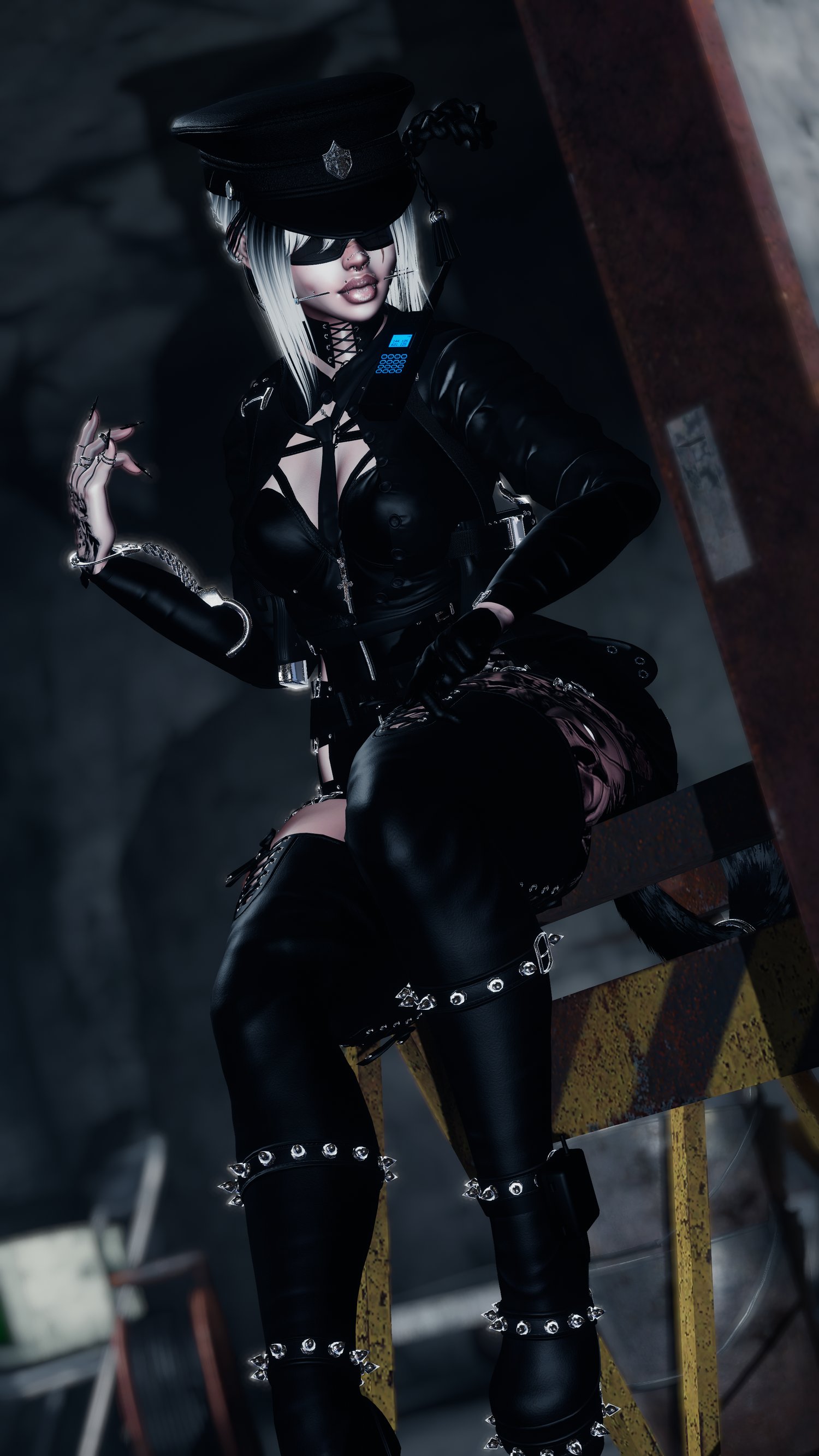 Thigh High Boots / Bow Heels / Shirt & Tie / Hand Cuffs / Mini Skirt / Tail / Nail / Holster / Shades /