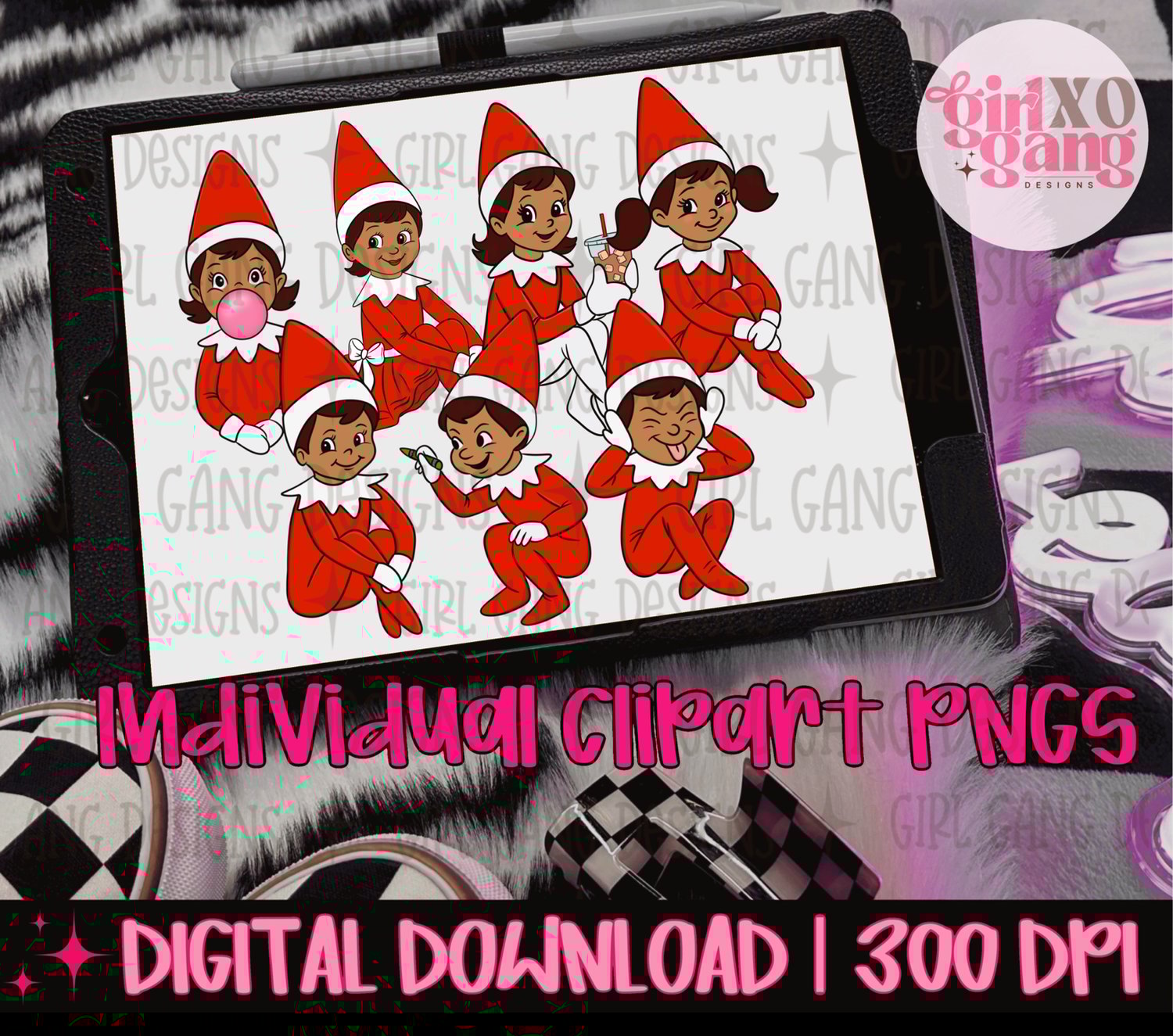 Hand drawn dark skin tone Elf clipart bundle png shelf elements , Christmas clipart png files