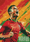 Celebrate the spirit of a nation with "Ronaldo: Pride of Portugal." This poster captures Cristiano Ronaldo representing Portugal, radiating determination and national pride. Set against a backdrop inspired by Portugal’s iconic red and green colors, the design highlights his legacy as a football legend who carries the hopes of his country. Perfect for passionate fans, this poster is a vibrant tribute to Ronaldo’s journey and his unyielding commitment to Portugal’s greatness on the world stage.