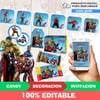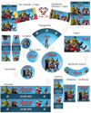- Antifaces, Banderines para Sorbetes, Circulos para Sorbetes, Pochoclera, Cajita Almohadita para caramelos, Cajita Feliz, Tapa de Cd, Fajas para Cupcakes