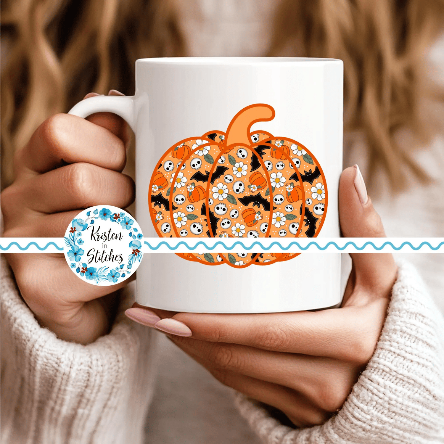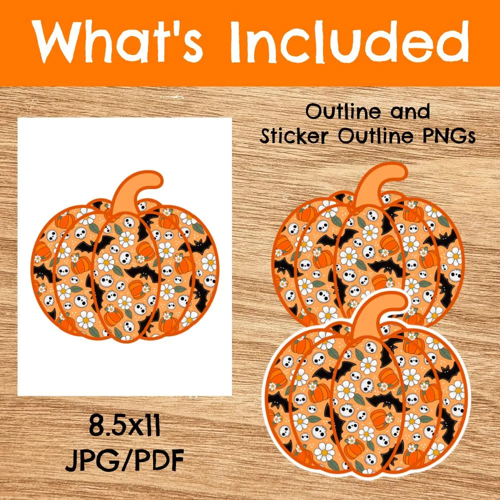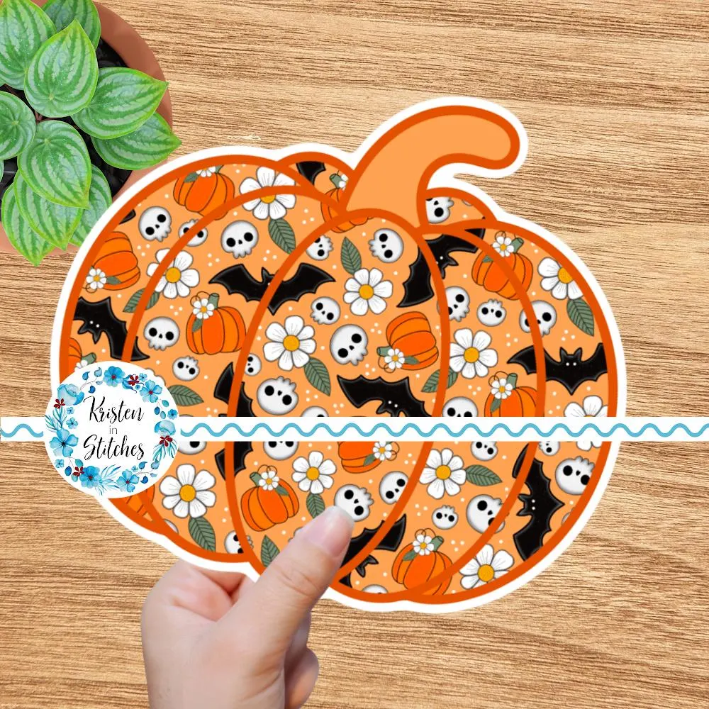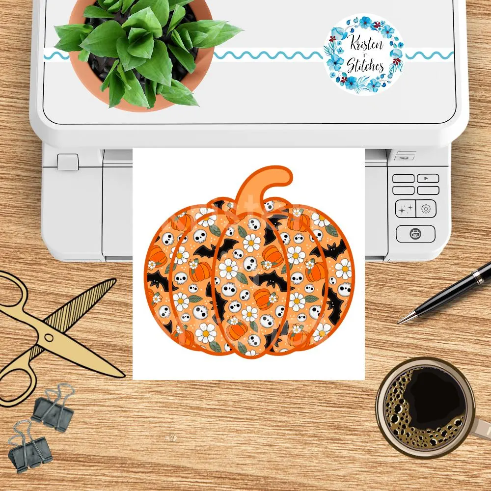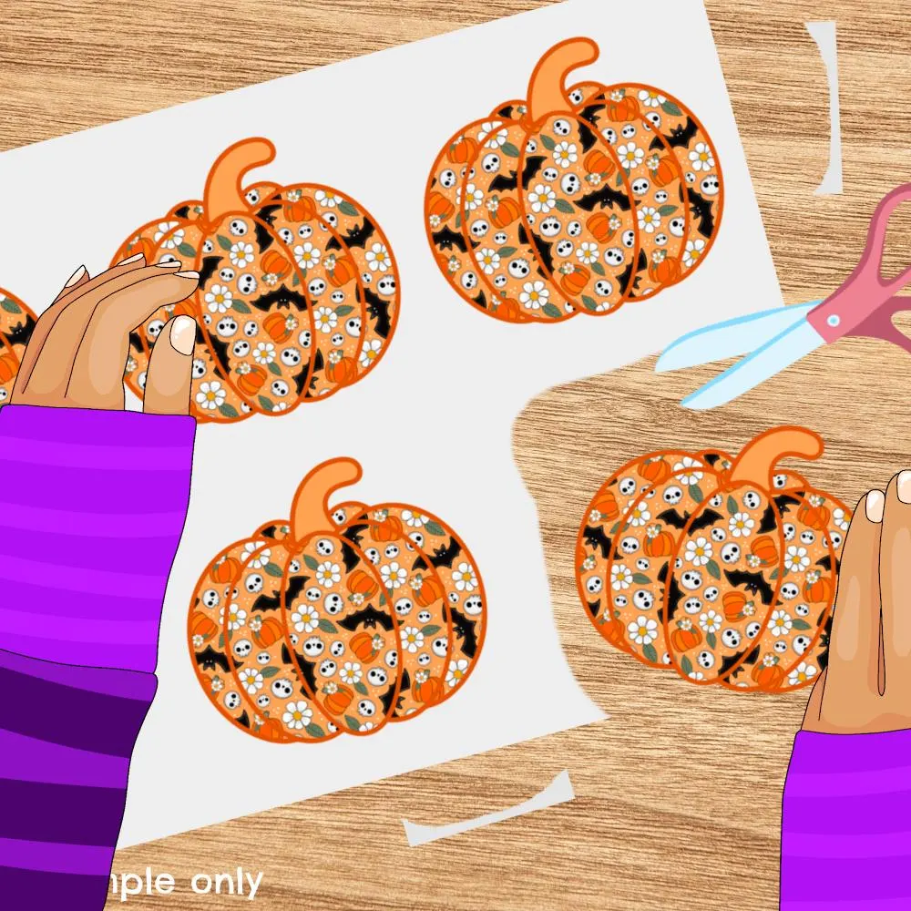 Halloween Pumpkin PNG, Large Printable Sticker or DTF Iron On Transfer Transparent File, DIY Print & Cut, Trendy Fall Skull Shirt Applique