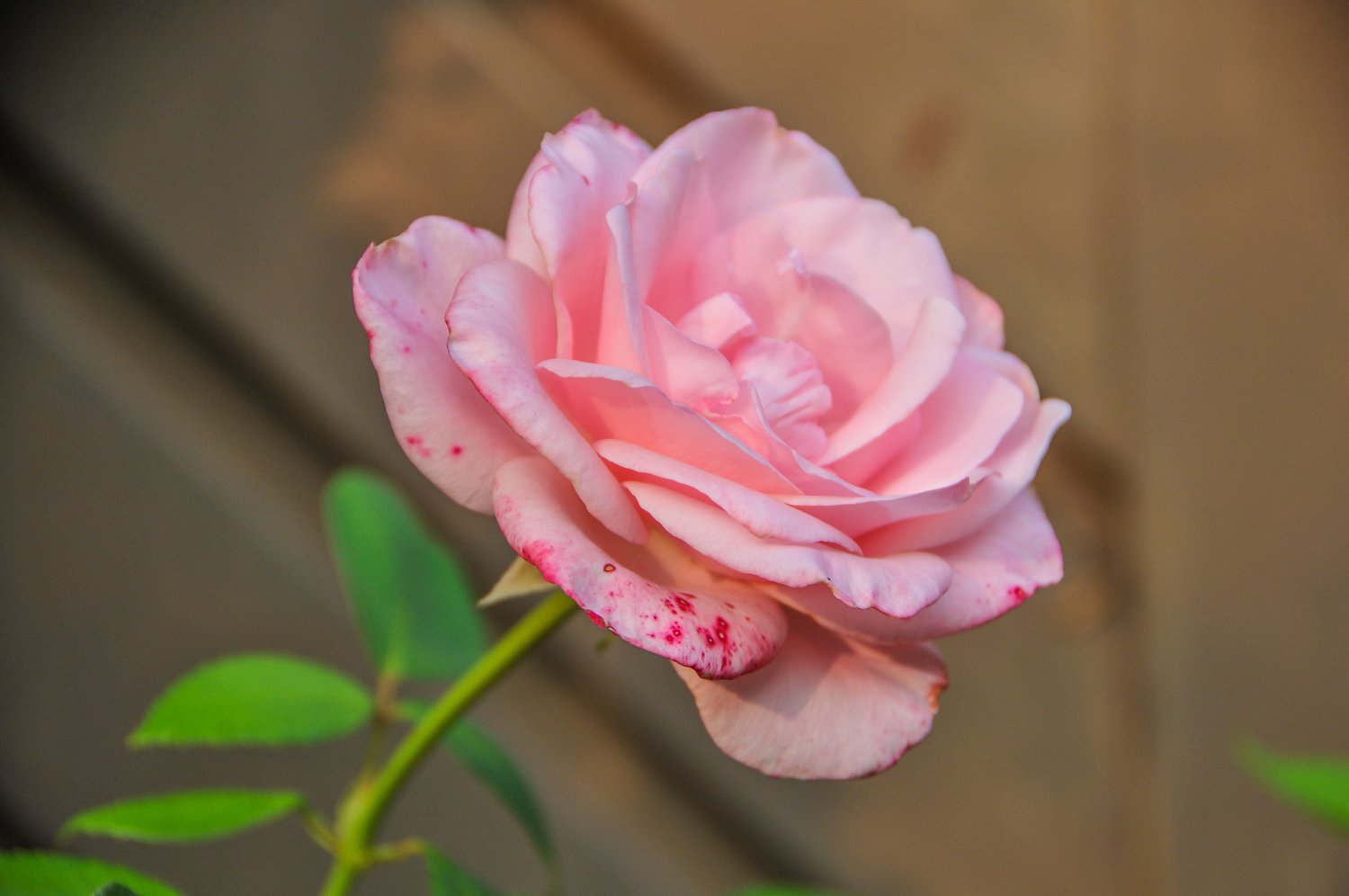 Close up shot of a pink rose in full bloom