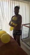 Watch this stripper enjoy popping a bunch of yellow balloons in different ways...