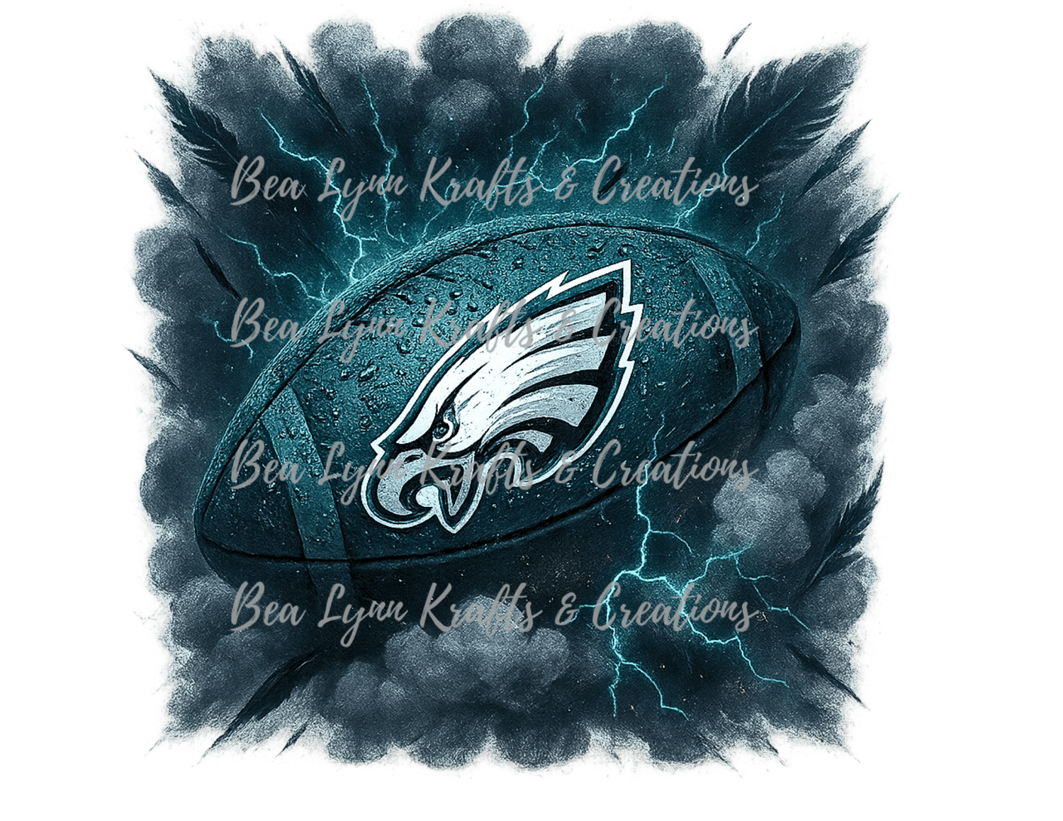 FLY EAGLES FLY! This Philadelphia Eagles football splash PNG is an all-out storm of midnight green pride. A slick, water-beaded football—engraved with the iconic Eagles logo—erupts from a whirlwind of green, silver, and black smoke. The blast is filled with fierce motion streaks, wing-shaped smoke curls, and feather fragments that scream Philly grit. Lightning cracks through the chaos as this game-day graphic flies off the screen, built for apparel, tumblers, posters, and everything in your championship lineup.
