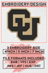 NCAA CU Buffaloes College Football Team Logo Embroidery Designs, NCAA Colorado Buffaloes Machine Embroidery Files, NCAA Logo embroidery designs, Ncaa Colorado Logo, Digital Download