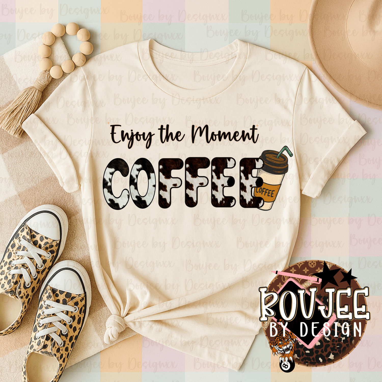 Enjoy the Moment Coffee PNG | Cow Print Coffee Shirt Design