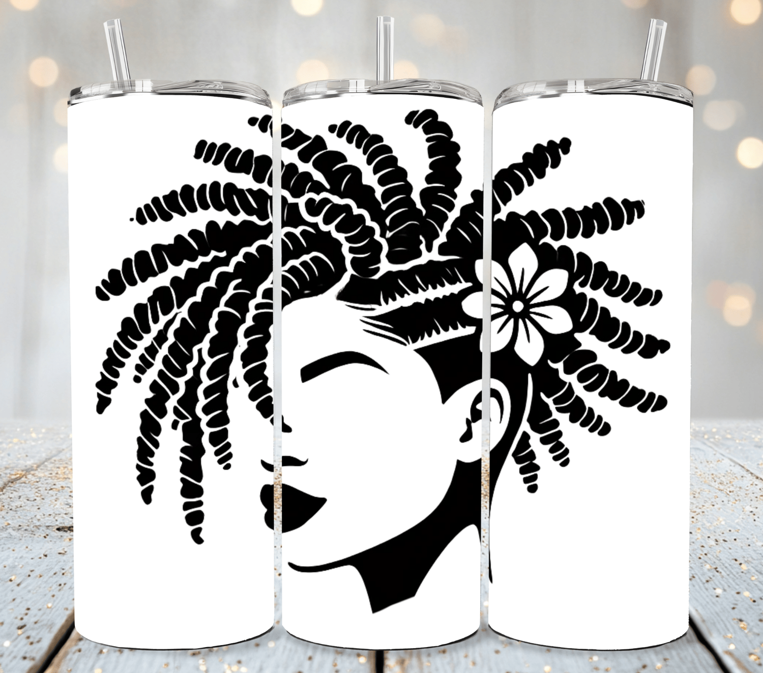 Afro Locs Tumbler Wrap SVG: Black Woman PNG, Sublimation Design (Digital Download)