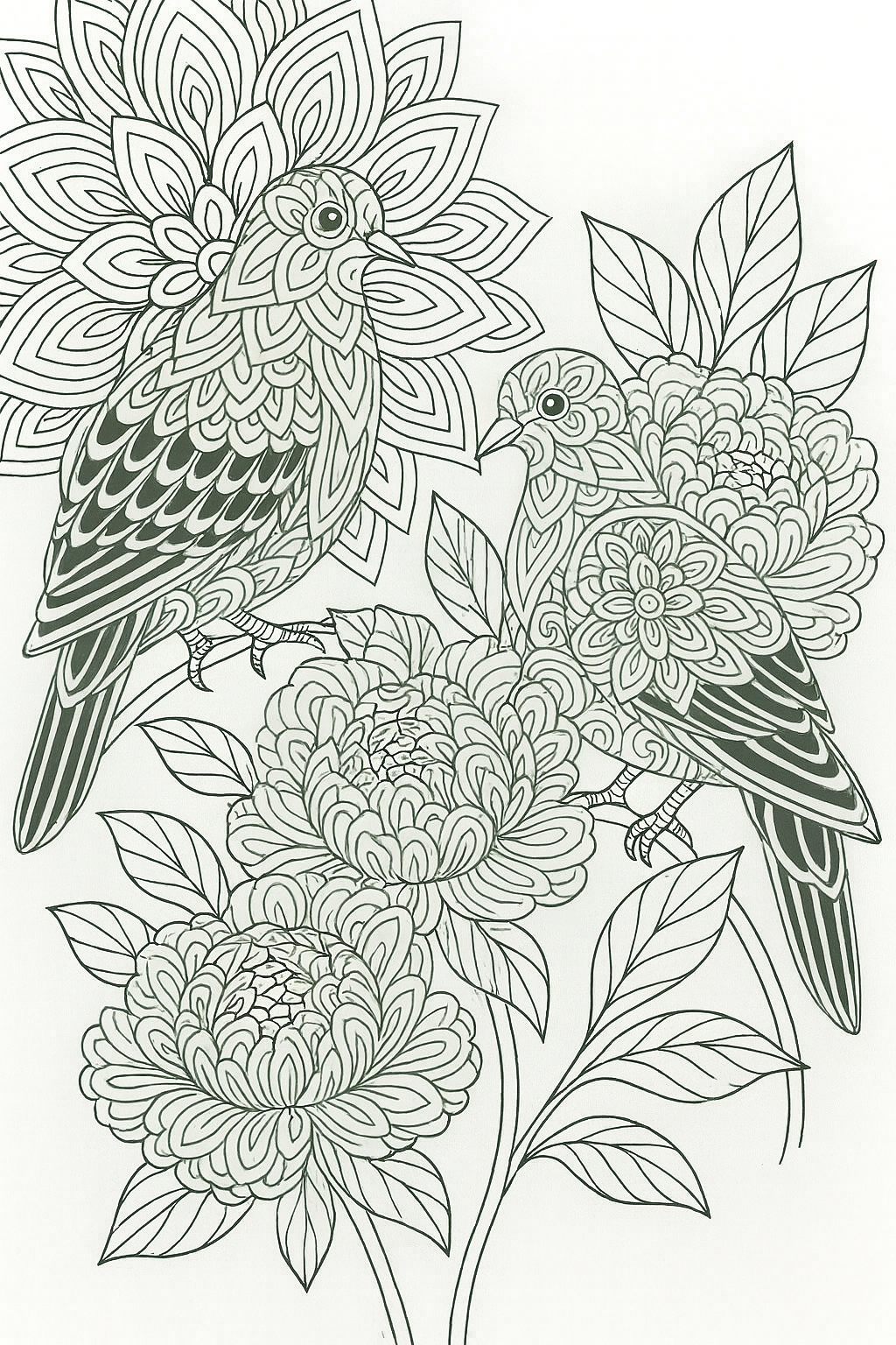 ποΈπΈ Peaceful Pair β Mandala Bird & Bloom Coloring Page