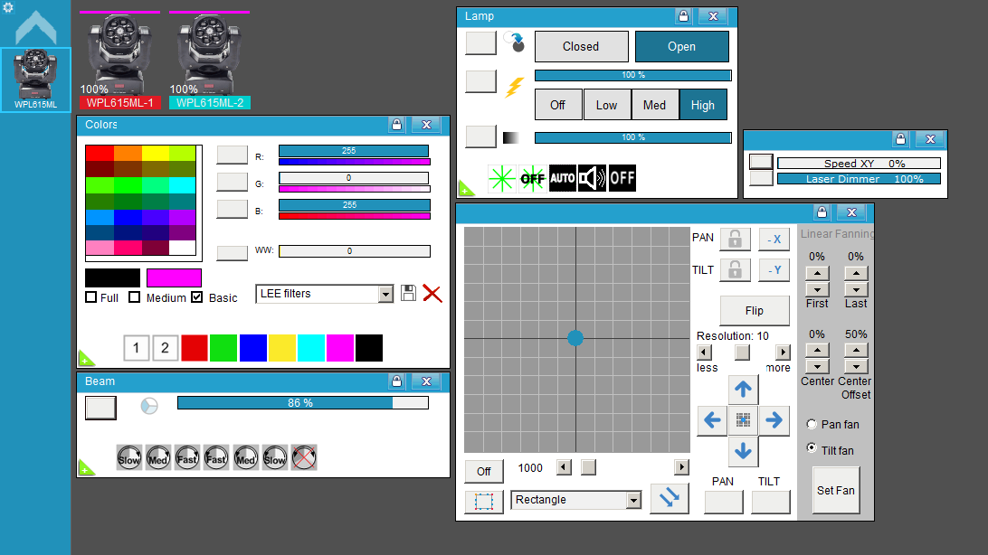 * Verifique, con un Fixture de pruebas (click), que coincidan estos canales: 5 Dimmer, 10 Blanco, 6 Strobo, 11 Láser.