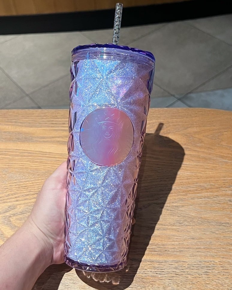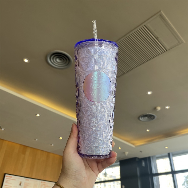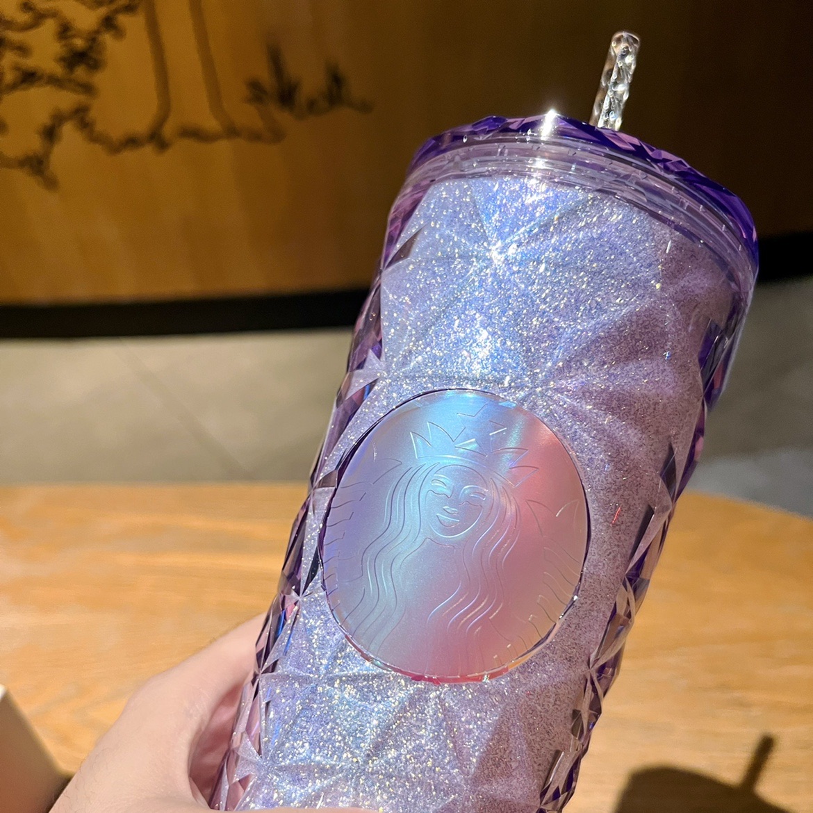 2023 Starbucks China Holiday Series 24oz Purple Glitter Prism-studded Tumbler with Straw