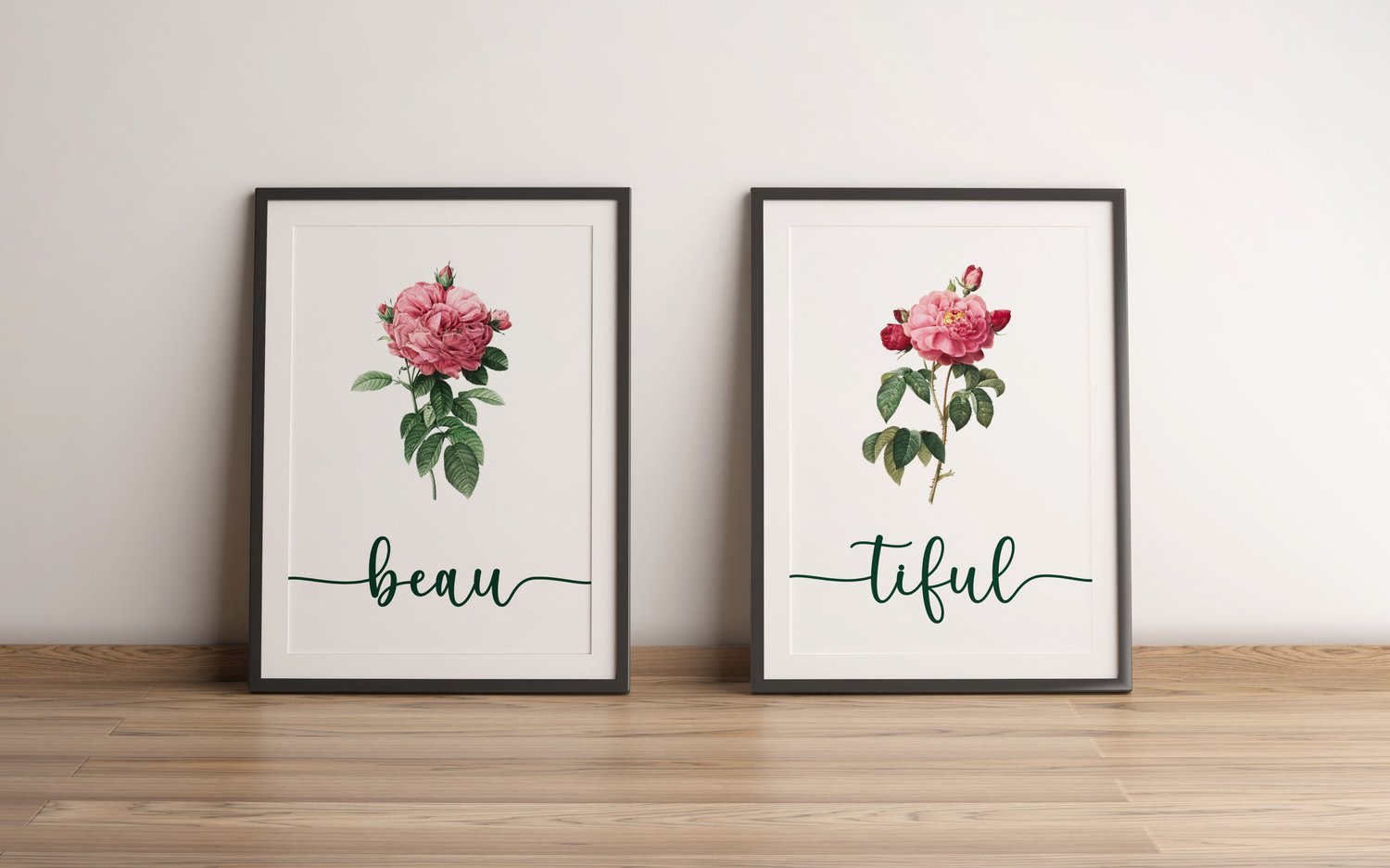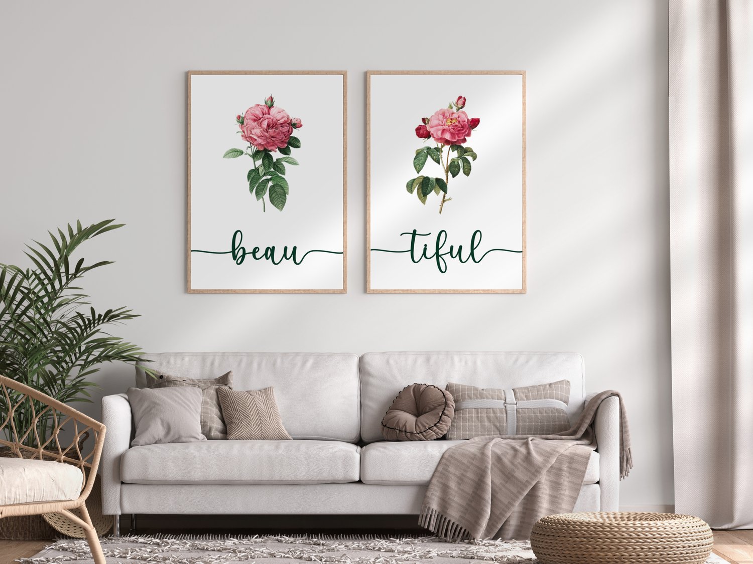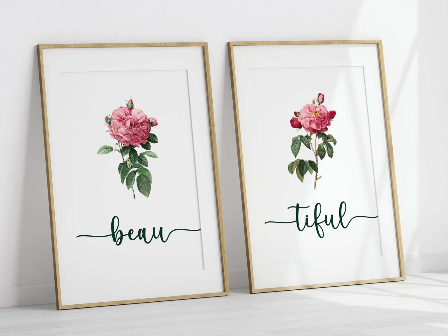 Set of 2 Beautiful Rose Printable Wall Art Poster