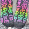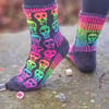 Roll for Skulls Size inclusive stranded socks with a leg gusset.