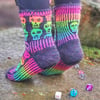 Roll for Skulls Socks are part of the Adventure Series: Featuring fun dice games to randomise your knitting and create unique gothic knitwear.