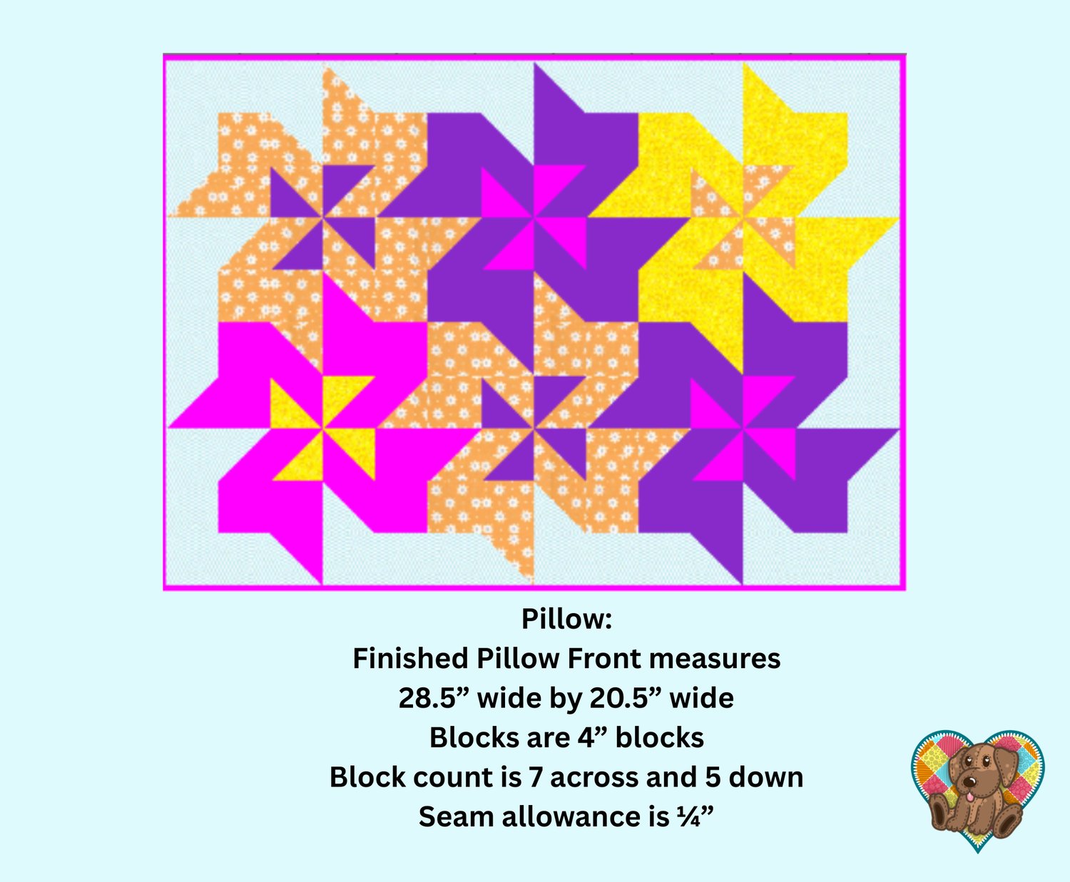 Pinwheel Flowers Pillow Sham Quilt Front Pattern