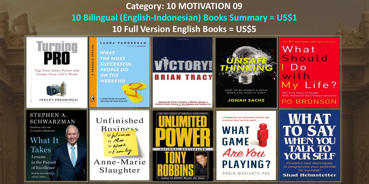 · Untuk 10 buku summary dalam 2 bahasa (English-Indonesian), hanya perlu 1 dollar saja, atau Rp.16.000,-