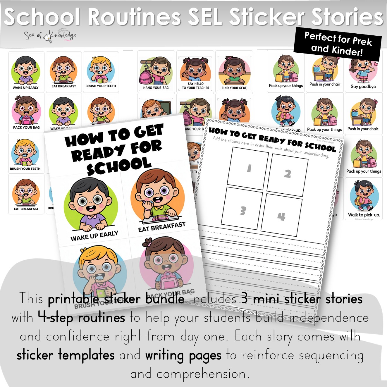 First Week of School Routines | Mini Sticker Stories Bundle Sequencing and SEL