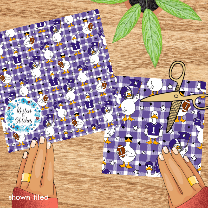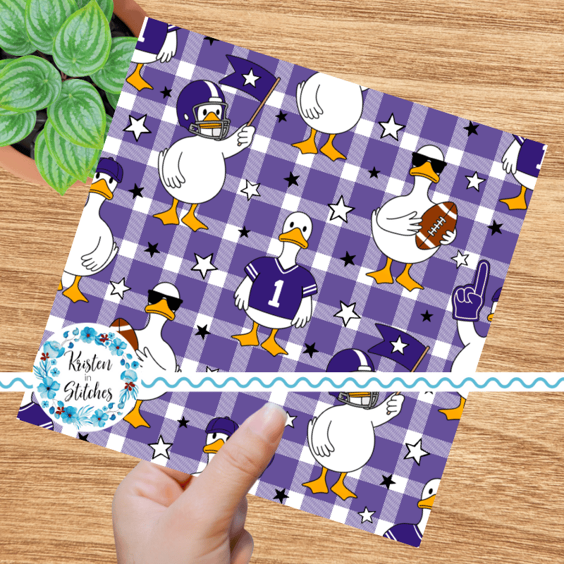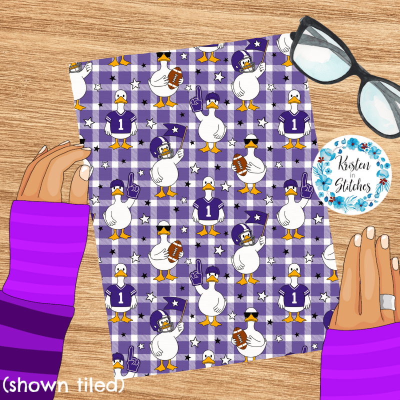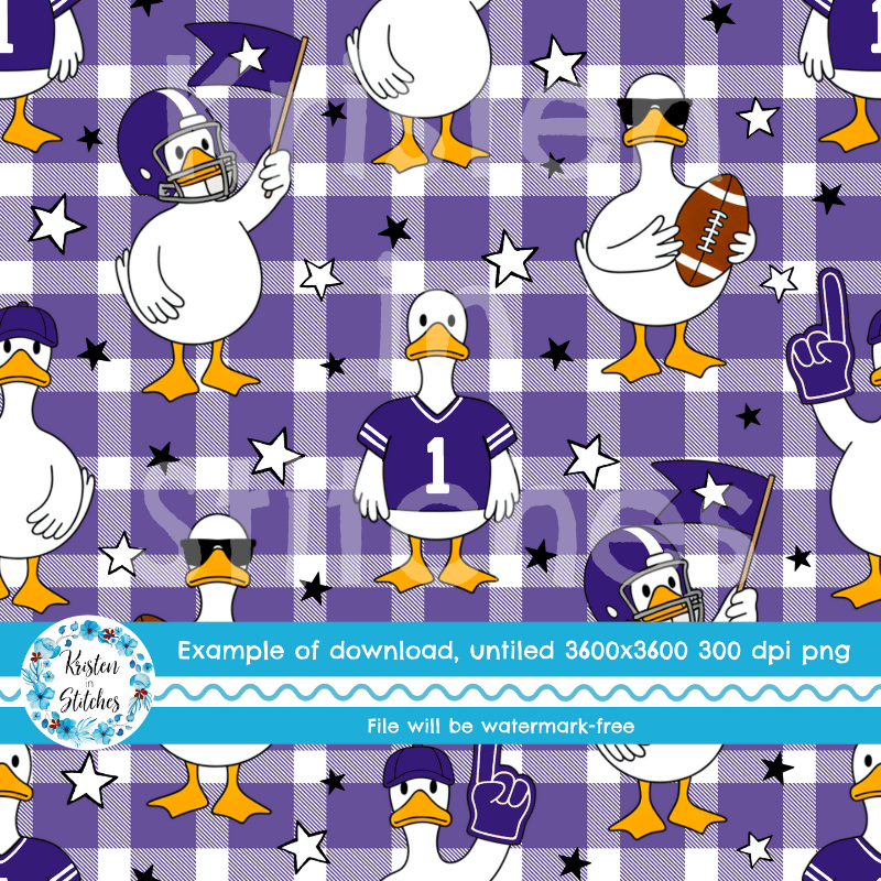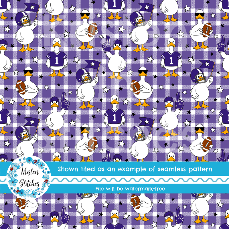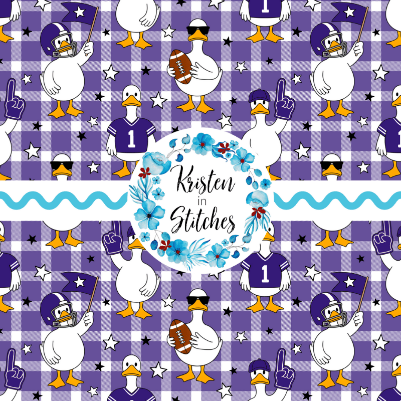 White geese ready for game day! Baltimore Ravens purple on gingham plaid.