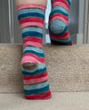 This pattern includes instructions for knitting the sock in both directions, so you can choose either method or knit one sock of the pair in each direction. At a glance, it’s truly hard to tell in which direction a given sock was knit.