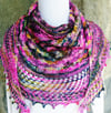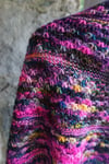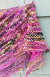 Worsted weight shawl is knit up in one skein of Miss Babs’ Yowza.