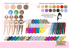 three different skin tones, three eye colours and 15 hair colours