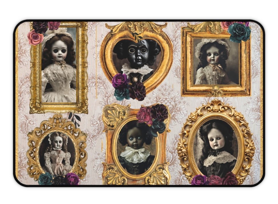 Vintage Doll Portrait Desk Mat, Gothic Decor, Office Accessories, Unique Gift for Her, Home Office, Halloween Decor