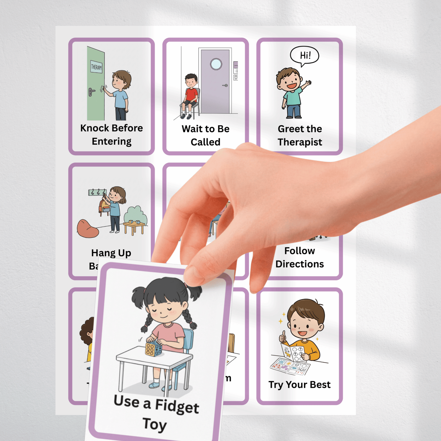 Looking for visual cue cards that support non-verbal communication and are perfectly lanyard sized? These Therapy RoomVisual Cue Cards help reinforce routines using simple, friendly visuals that students can easily understand — without needing to say a word.