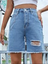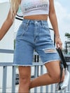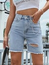 Distressed Raw Hem Denim Shorts