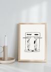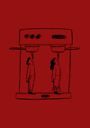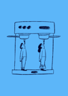 A poster with illustrations, of two characters drinking coffee directly from the coffee machine☕☕