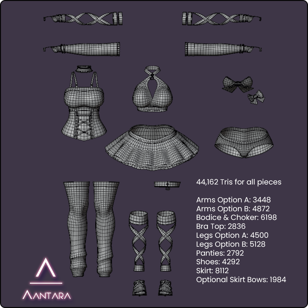 Fit to Curvy base V3, Aphrodite base V2, VR eGirl base, and SlimStack base, with additional rigging on the skirt for physics.