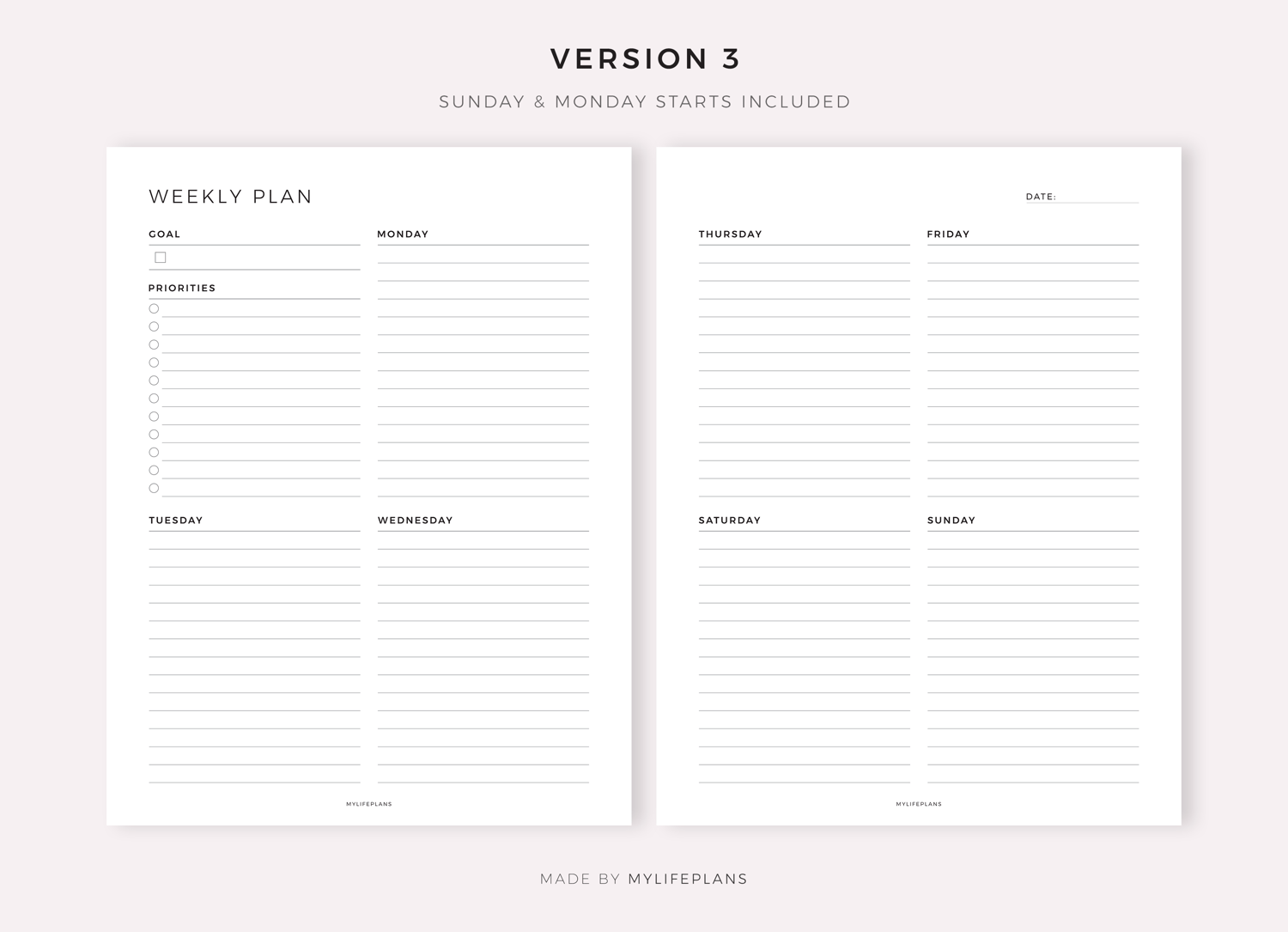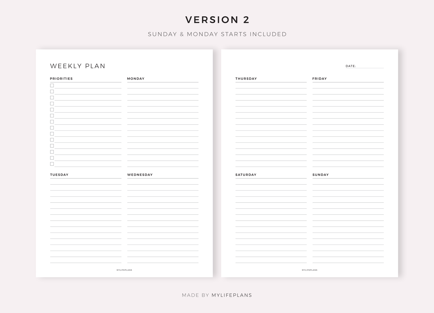 Week on Two Pages, Digital Planner for Goodnotes, Notability, Ipad
