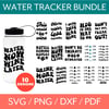 Take your crafting to the next level with the Retro Water Tracker SVG Bundle, featuring 10 bold, high-quality hydration quote designs and 5 unique time tracker layouts—all inspired by groovy retro vibes, playful lettering, and a commitment to staying hydrated with style.