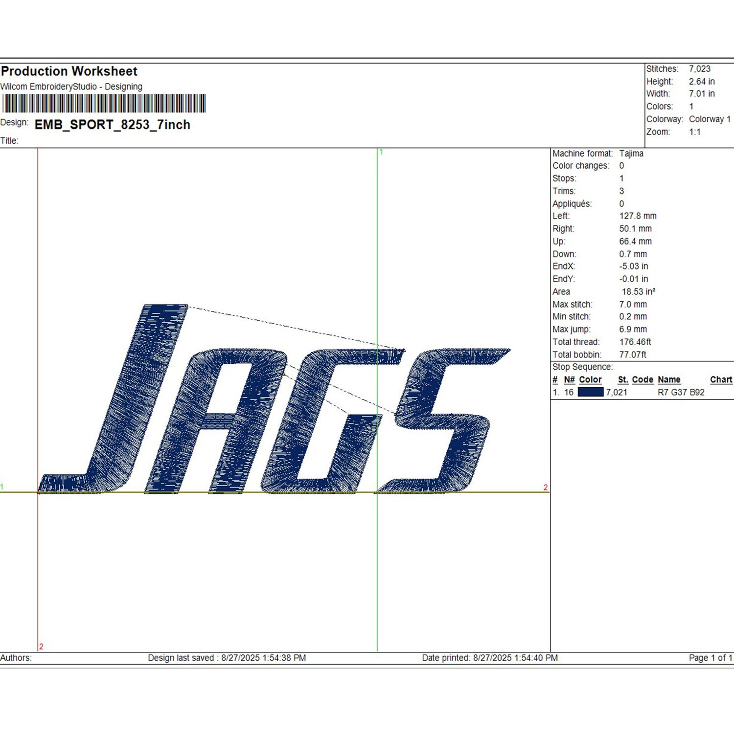 NCAA Jags College Football Team Writing Logo Embroidery Designs, Ncaa Embroidery Files, South Alabama Jaguars NCAA Team Logo Embroidery, Game Day Machine Embroidery Design, Digital Download