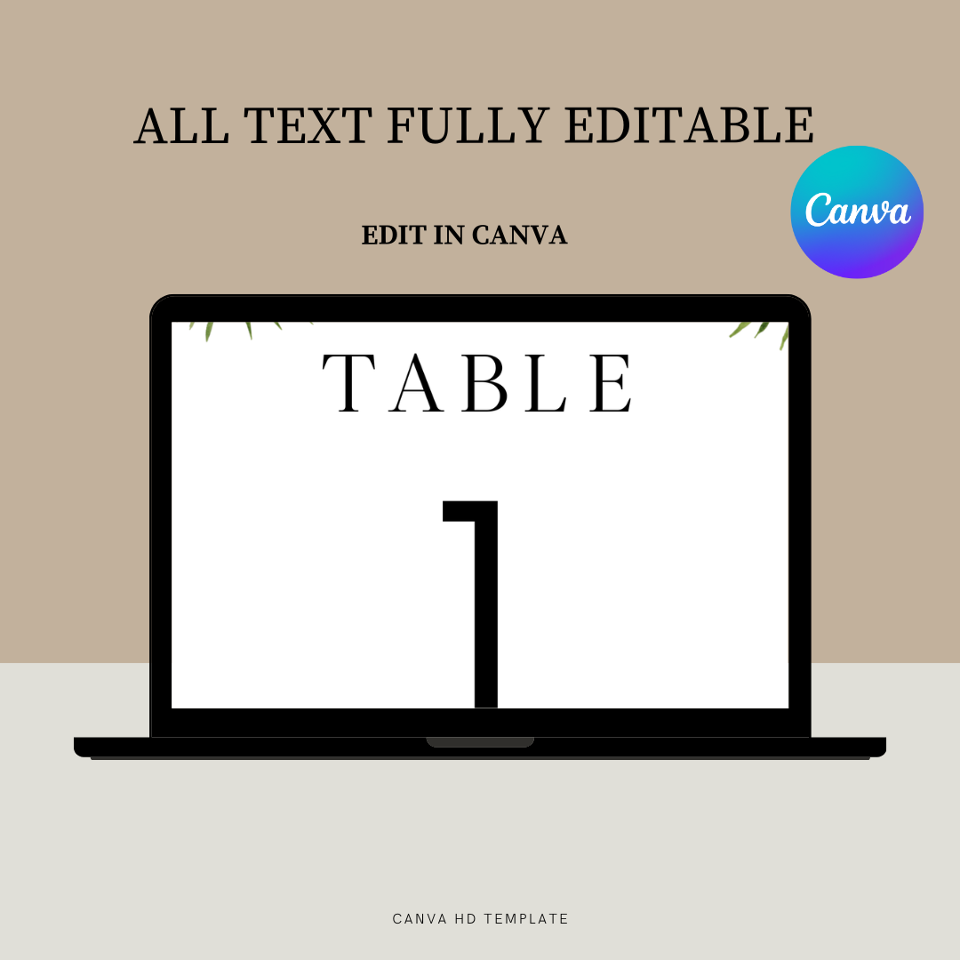 🌿 Green Wedding Table Numbers – Editable Printable Template