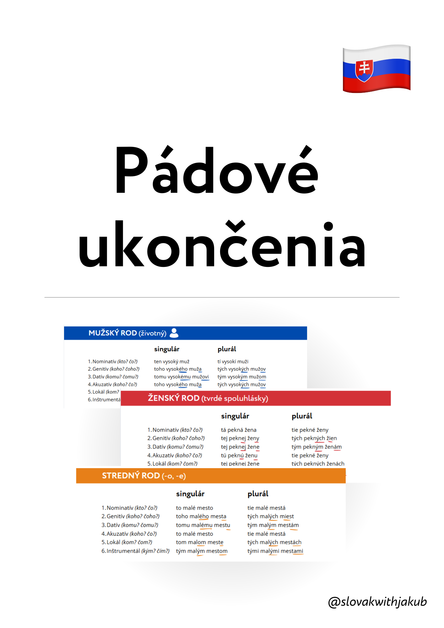 Všetky pádové ukončenia v slovenčine (nominatív, genitív, datív, akuzatív, lokál, inštrumentál) na jednom mieste!