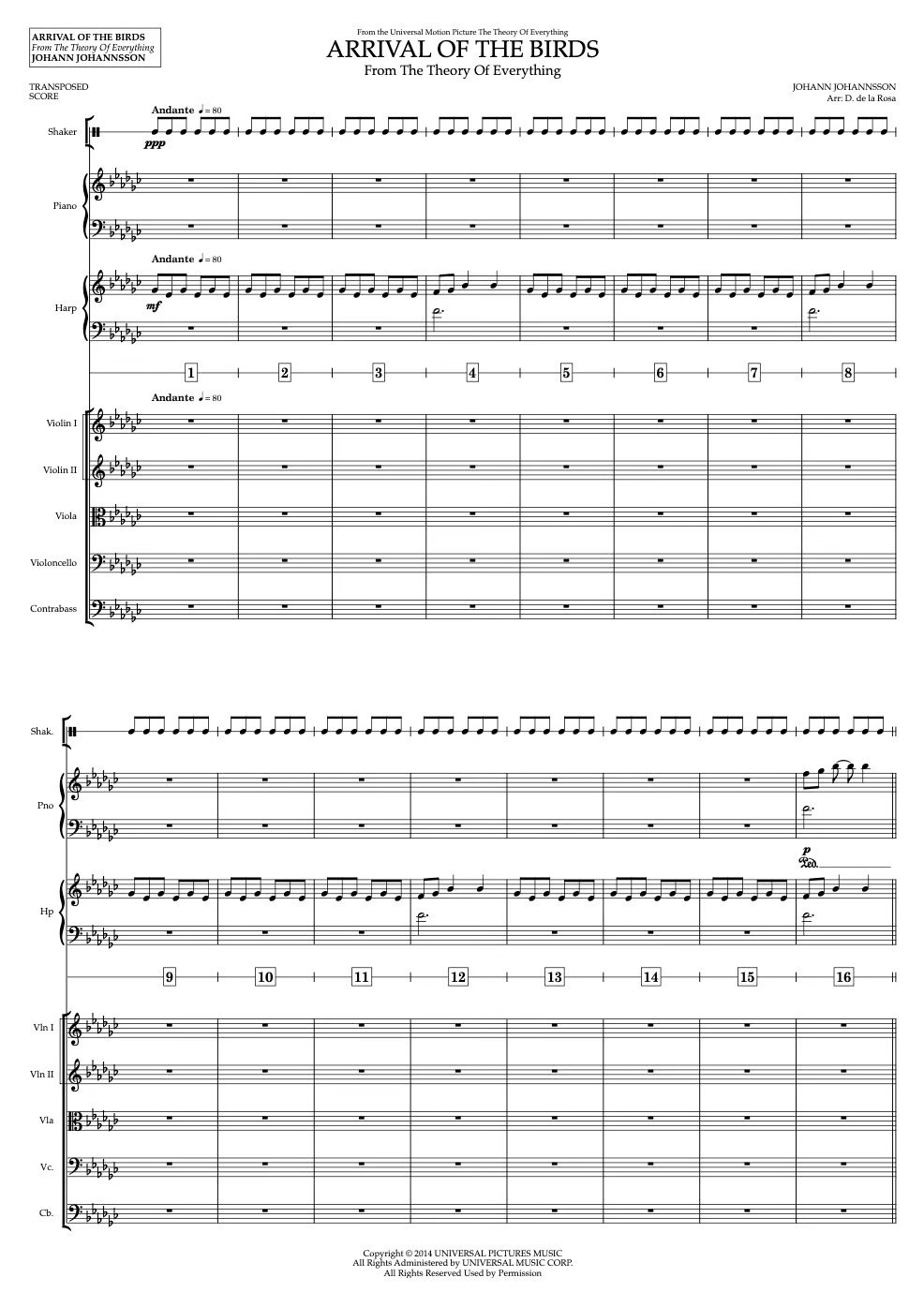 Arrival Of The Birds - From The Theory Of Everything (Full Score)