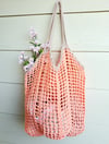 Why do I call this market bag a Network Shopper? First, the checkered pattern of chain-spaces looks like a net, so this is a “network of chains”. And second, “shopper” is a cool alternative to “market bag”, so why not mix things up a bit.