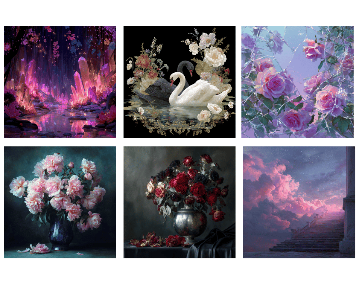 All of my work was created on AI using my own prompt formulas and commands. All images made are unique and created specifically for my shop.