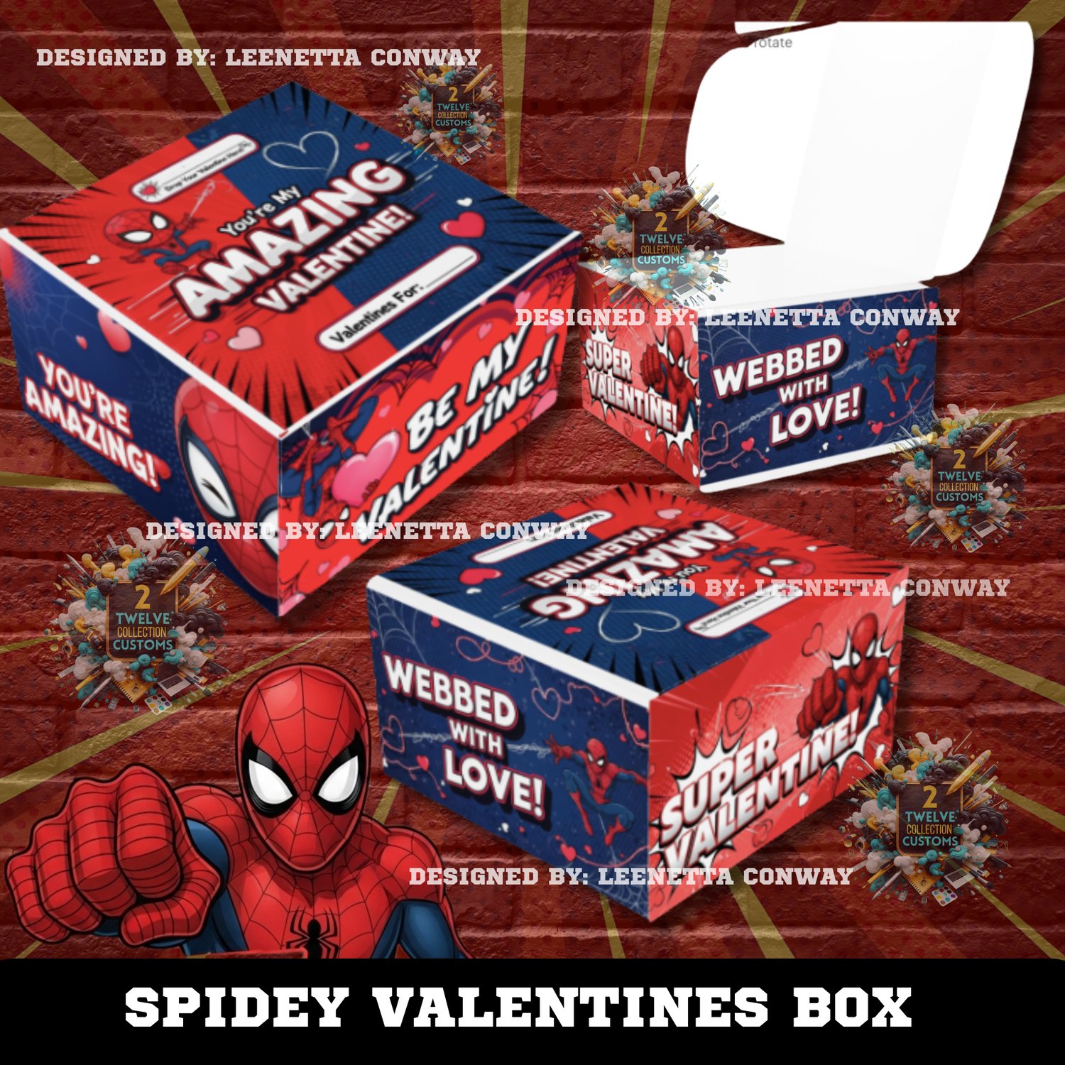 Spidey Valentines Box, Spiderman Valentine Box Template, Canva Valentines Box Template, Kids Valentine Treat Box, Superhero Valentine Box, Custom Valentine Box, 8x8x4 Treat Box Template, Valentine Party Favor Box