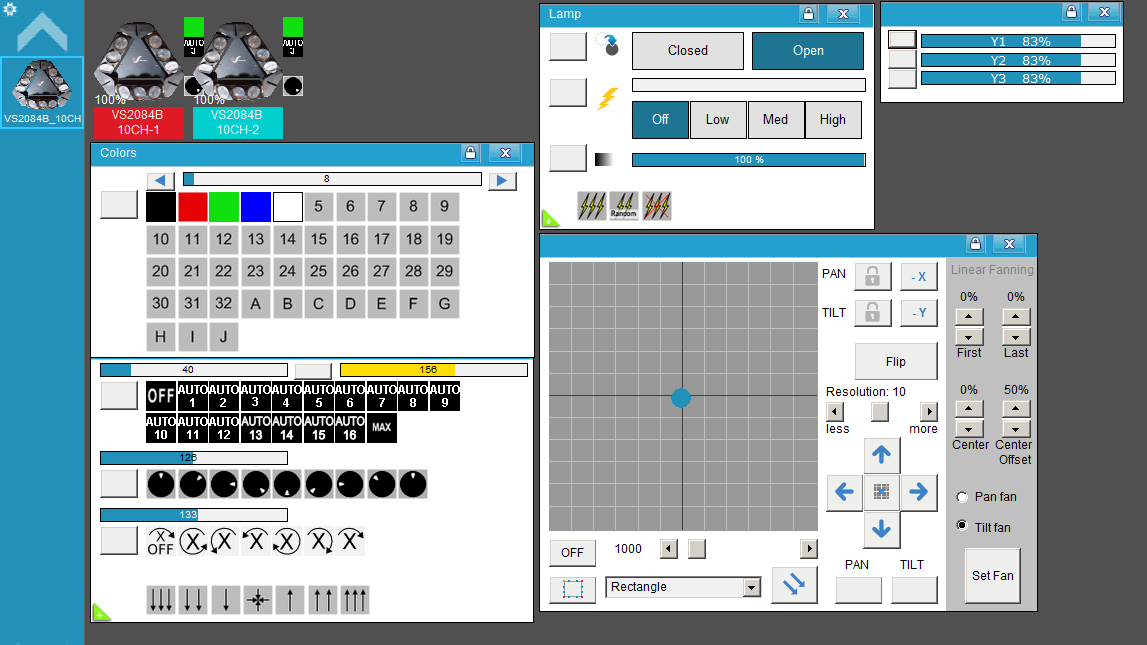 • Posición Tilt individual de cada barra desde los faders Y1, Y2 y Y3.