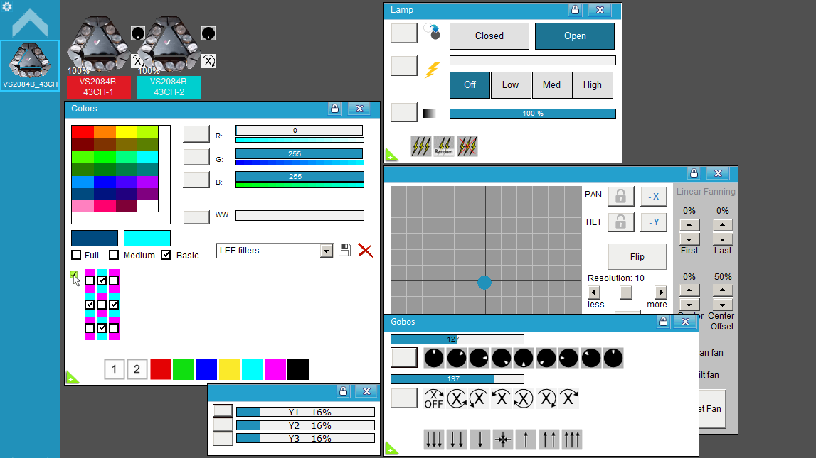 - Se entregan dos Fixtures: uno para el modo de 10 canales DMX y otro para el modo de 43 canales DMX.