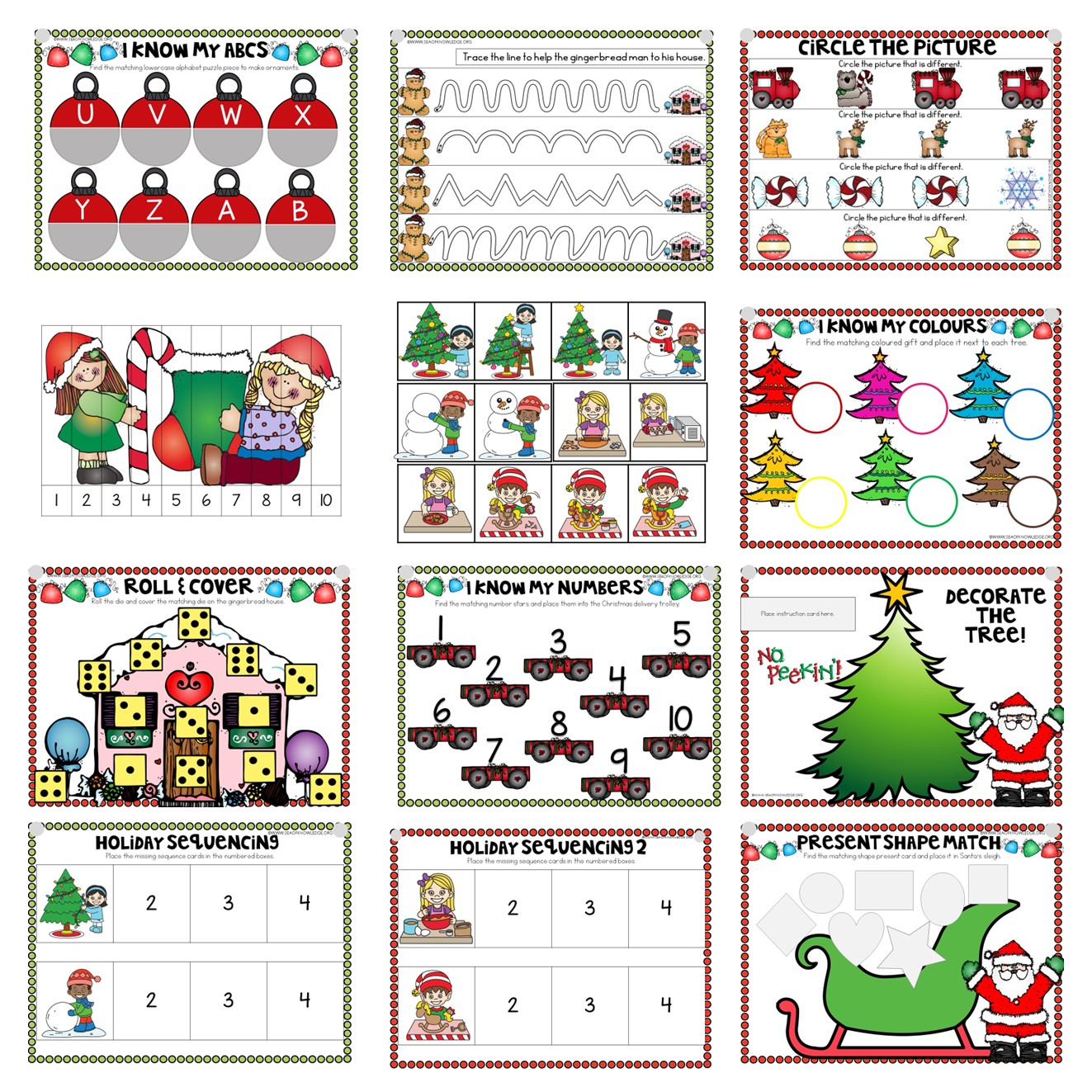 - Christmas sequencing mats (e.g., build a gingerbread house)
