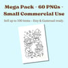 This Halloween mini bundle includes 60 cute and spooky PNG illustrations designed for creators, crafters, and small shop owners. Ideal for printable stickers, party goods, packaging, or limited-run POD items. Use them to add seasonal charm to your handmade products.