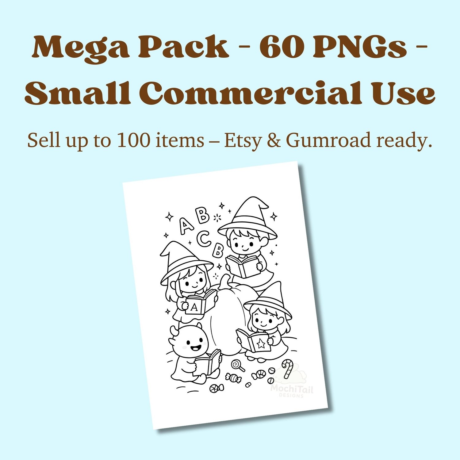 60 Kawaii Halloween Cliparts – Small Commercial License | Transparent PNGs for Etsy & Printables
