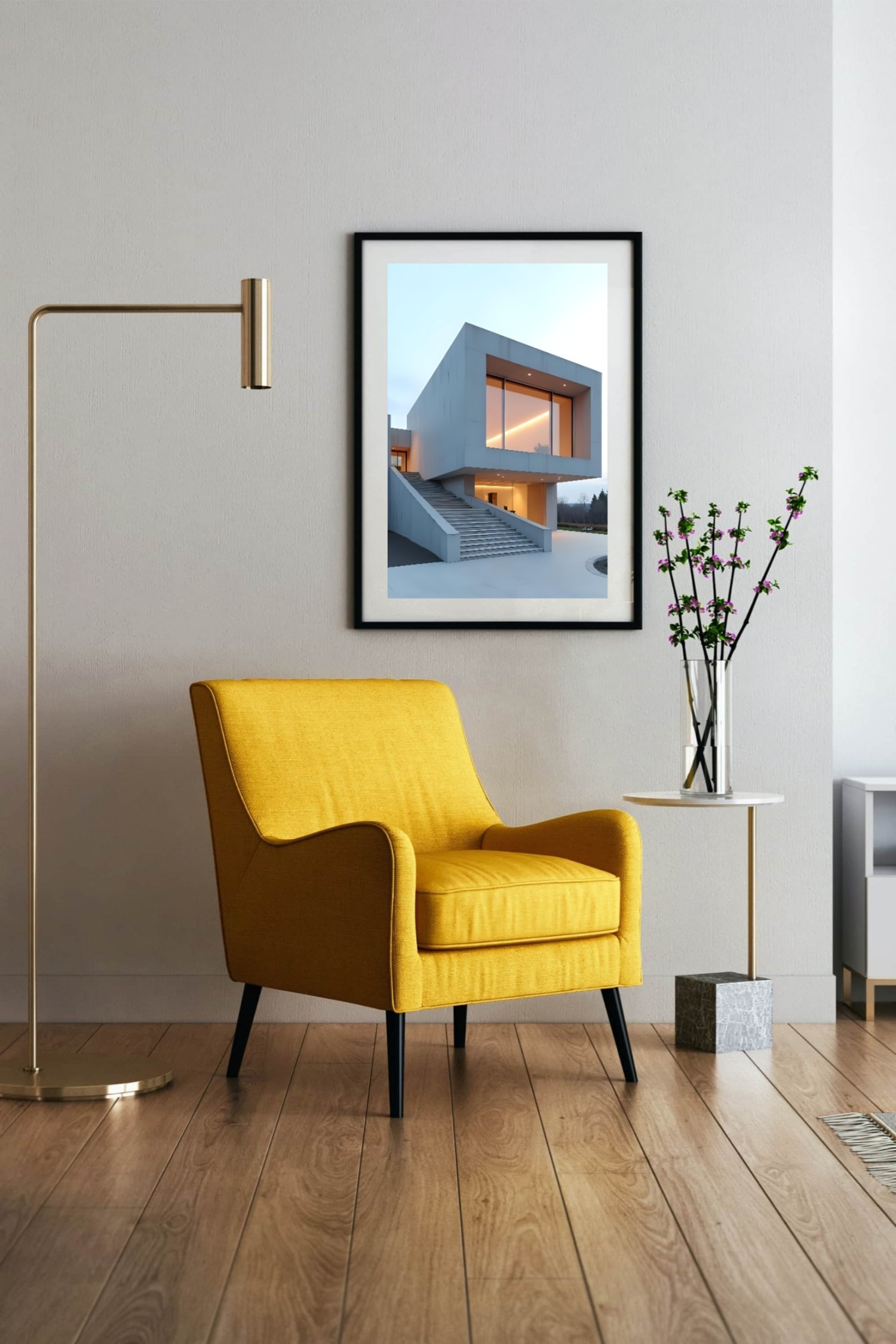 Modern Minimalist Concrete House with Grand Staircase and Expansive Window